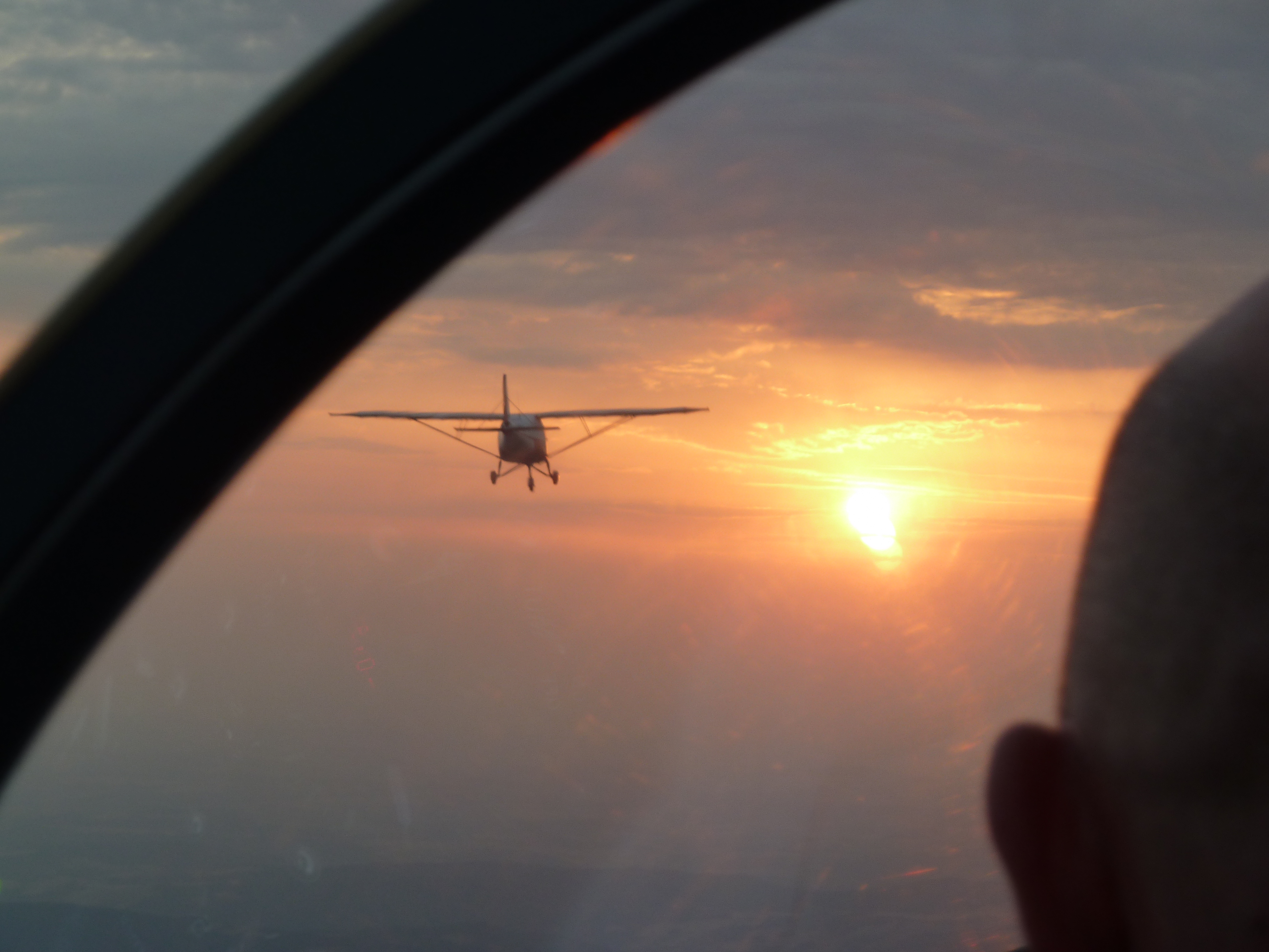 Um 5:15 Uhr startete die ASK 21 (Michael und Sascha) im Schlepptau hinter unserer DR400 (Manfred und Timur), gefolgt von unserem UL (Markus und Dennis) der Sonne entgegen. Nach einer knappen Viertelstunde war es dann soweit – Die ersten Sonnenstrahlen erschienen über dem Horizont und den Piloten bot sich in knapp 2.000 Metern Höhe ein atemberaubender Anblick.