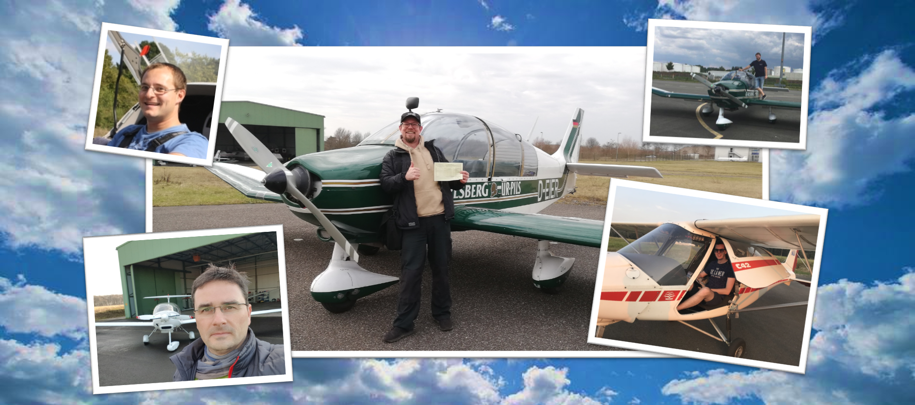 - Unser Schriftführer Rafael Math (oben links) hat seine Segelflug- und Motorsegler-Lizenz auf die Motorfluglizenz erweitert.